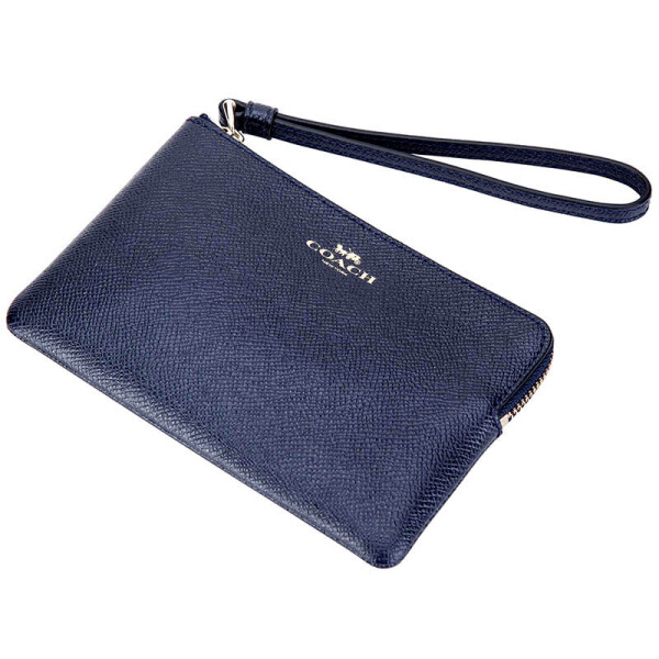 Coach Wristlet In Gift Box Small Wristlet In Gift Box Corner Zip Wristlet In Crossgrain Leather Midnight Navy Dark Blue / Gold # F58032