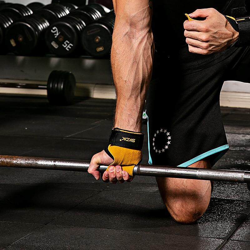 SKDK Fitness Leather WeightLifting Gloves Gym Grip Palm Protector Strap Weight lifting Pad Wrist Wraps Dumbbell Gloves Gym Equipment