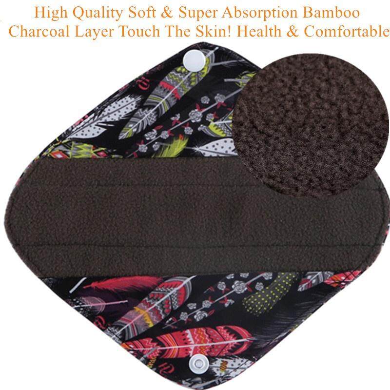[simfamily]Reusable 6+1set Women Sanity Napkins Panty Liners Set Bamboo Charcoal Daily Use Sanitary Pads Mama Menstrual Pads
