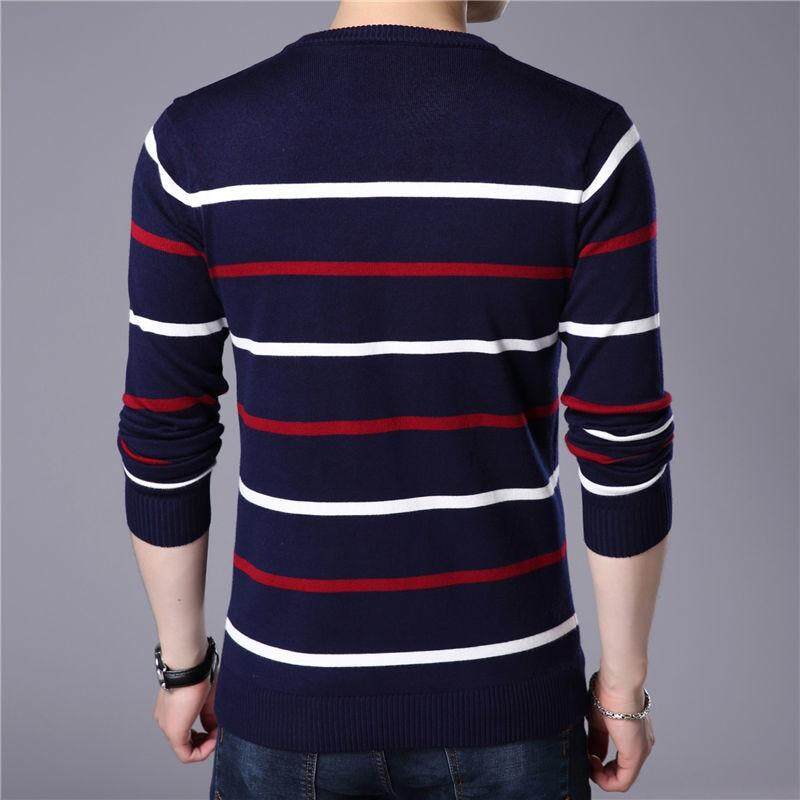 Cozy Up O-Neck Pullover Men Brand Autumn Winter New Arrival Cashmere Wool Sweater Men Casual Striped Pull Men