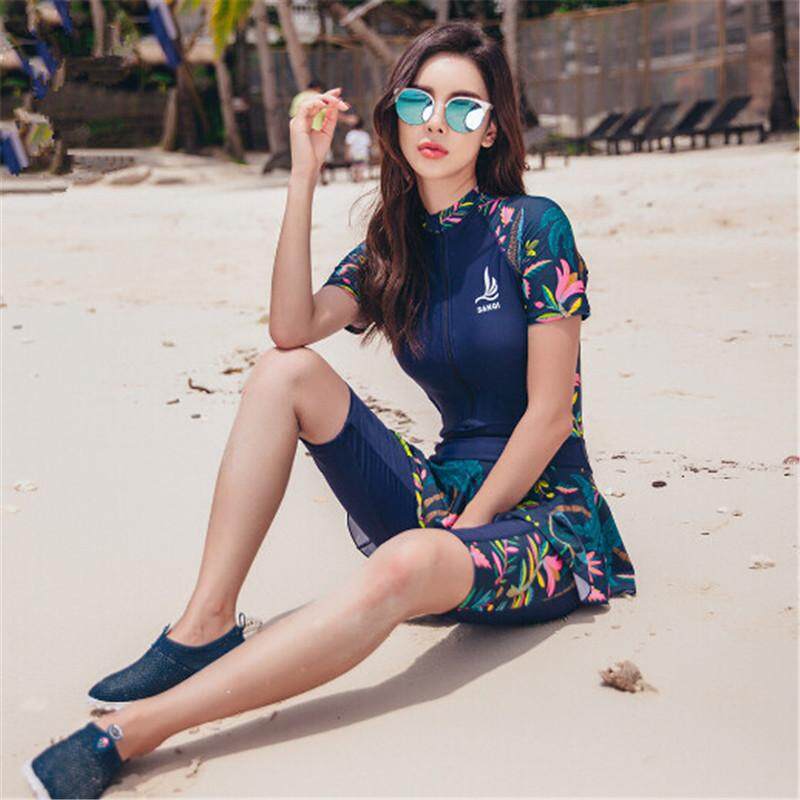 Luoke Sport Swimwear Shorts Black Swimsuit Women's Conservative Swim Suit for Women One-piece Striped Flat Angle Cover Belly Slim Swimming Suit Women Long Sleeve Hot Spring Swimsuit Discount Hot Sale