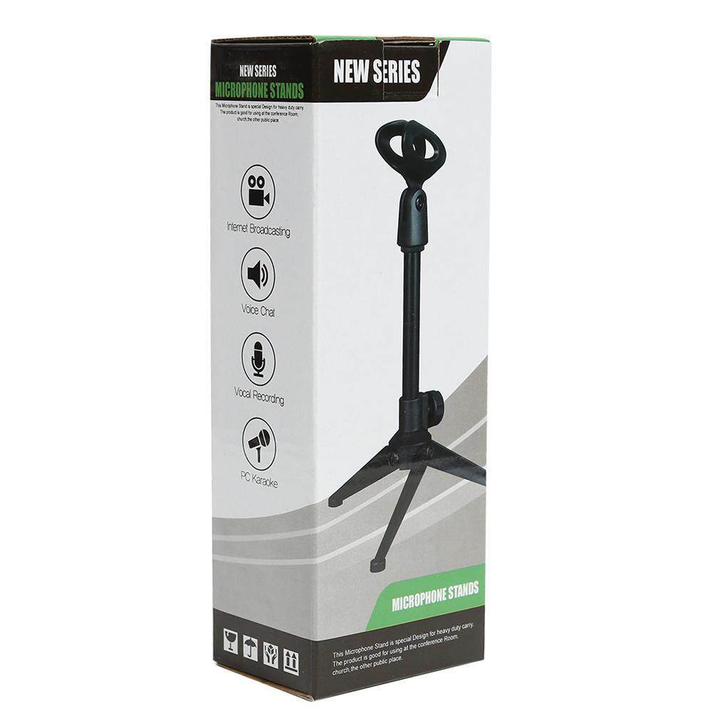 Universal Adjustable Desk Capacitive Microphone Stand Portable Foldable Tripod MIC Tabletop Stand Holder with Microphone Clip Feature: 1. The plastic part is made of ABS high quality material. The foot is made of zinc alloy, which is durable and can be folded with three supporting feet.