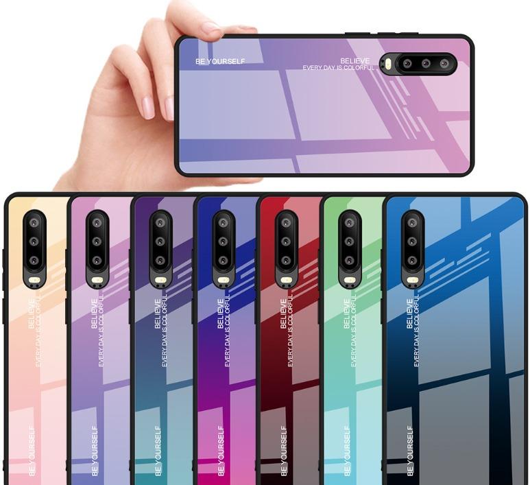 [SG] Huawei P30 Gradient Tempered Glass Back Case - Retain and Further Enhance Phone Beauty - Impact and Scratch Resistant - Glossy and Classy Look - Soft Silicone Edge + Tempered Glass Cover + Painte