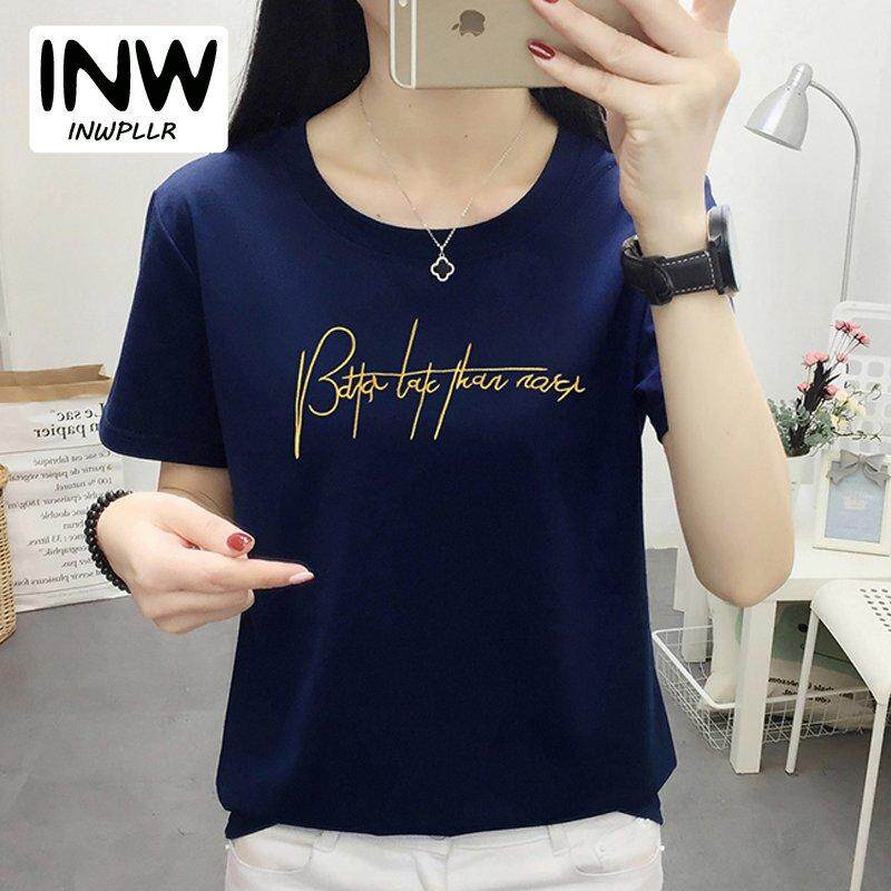 INWPLLR Women's Fashion Tops Tees Letter Embroidery Tshirts M-5XL Plus Size T-Shirts Summer Korean-style Tshirt Casual Short Sleeve T Shirt For Women