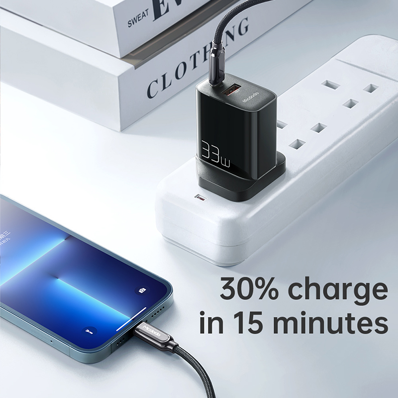 DISOUR Original US/EU/UK Plug 65W GaN Fast Charger QC3.0 USB+Type-C PD For Infinix Xiaomi Redmi Huawei iPhone Oppo Vivi Charge Cable 5V/6.6A 9V/3A 12V/2.75A 20V/1.67A Quick Charging For IOS Android