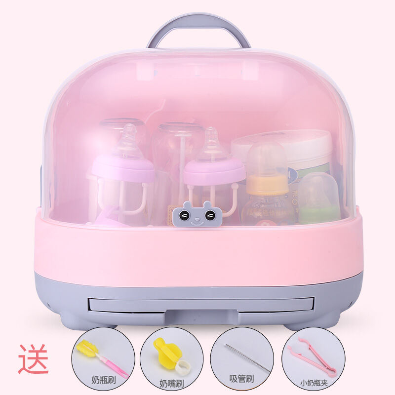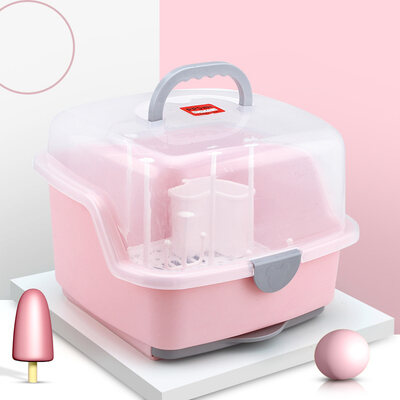 Baby Bottle Storage Box Portable Large Dust-Proof Drying Draining Rack Baby Tableware Organizing Dry Storage Box