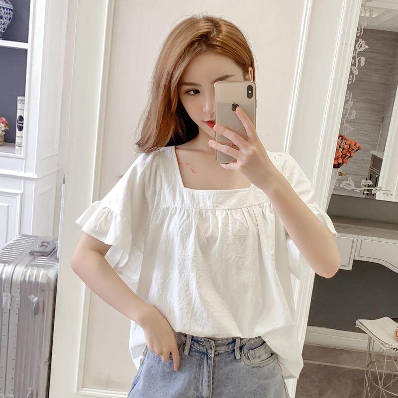 AFEG new Korean women's short-sleeved loose square collar solid color casual fashion wild temperament blouse