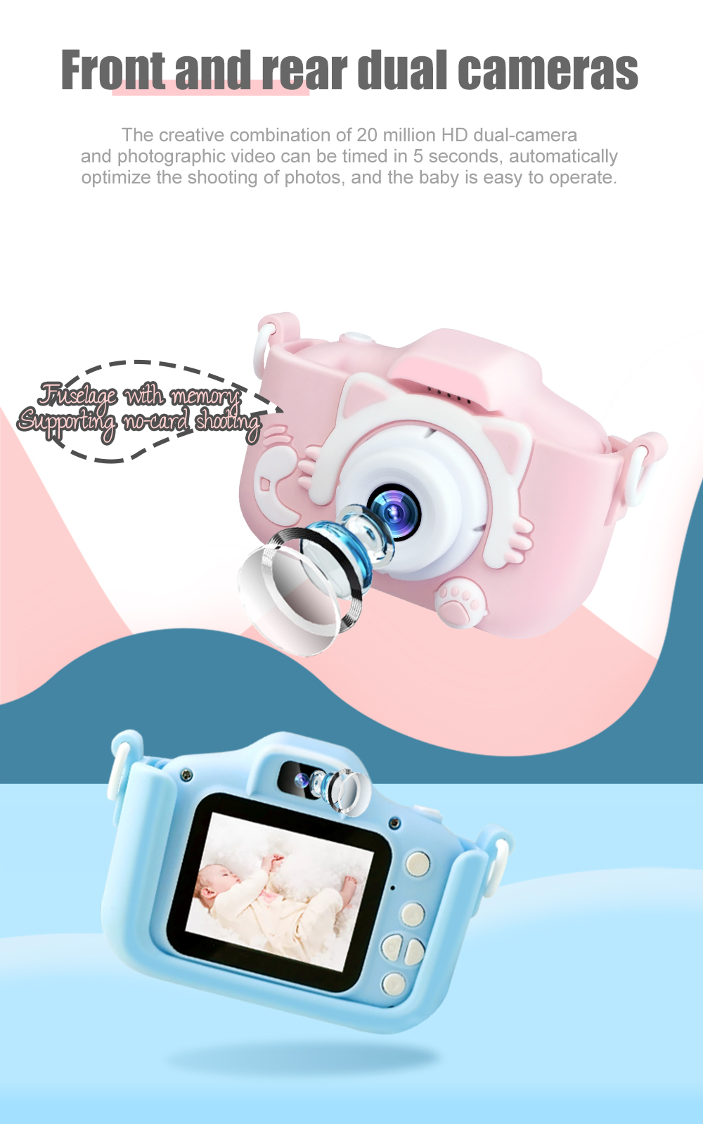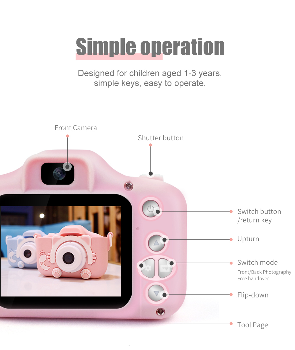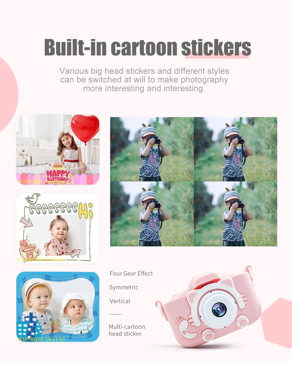 YLANTECH Mini Cartoon Kids Camera Creative Children's Camera HD 1200W Pixels Digital Camera Portable 1080P Camera For Kids Birthday Christmas Gift(with free 16GB TF Card)