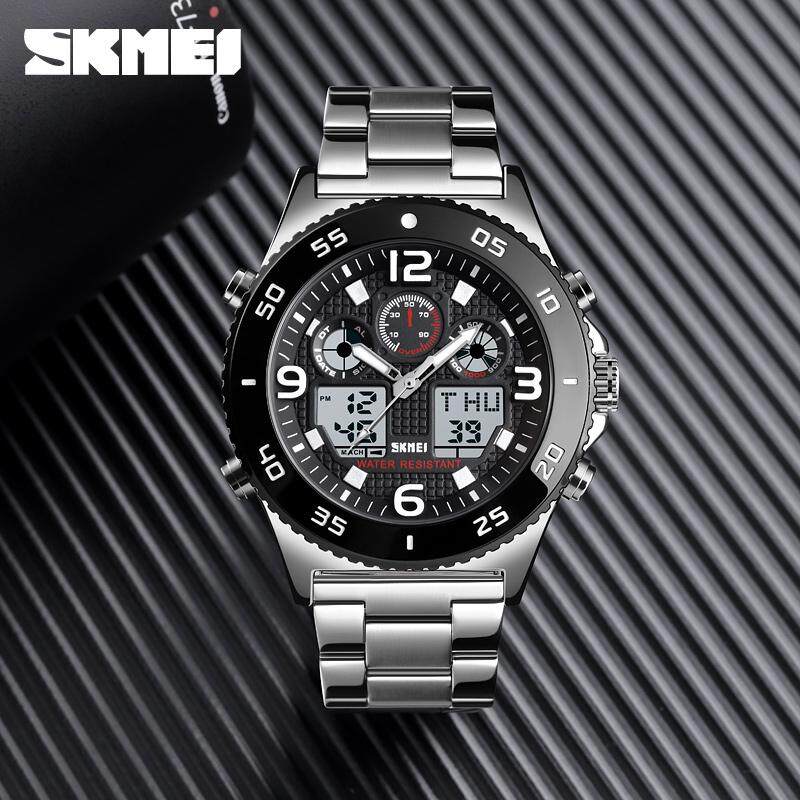 SKMEI Sports Fahsion Watches Stainless Steel Stopwatch Dual Display Waterproof Digital Watch For Man Men 1538B