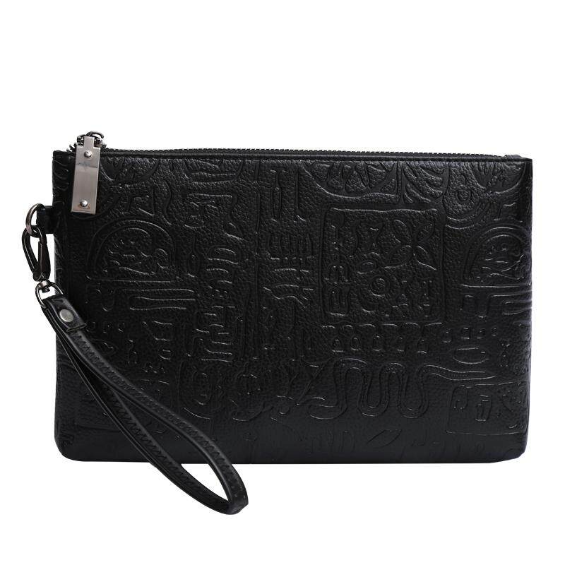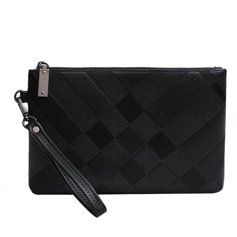 Men's Black Casual Clutch Bag Business Zippered Envelope Fashion Hand Bag