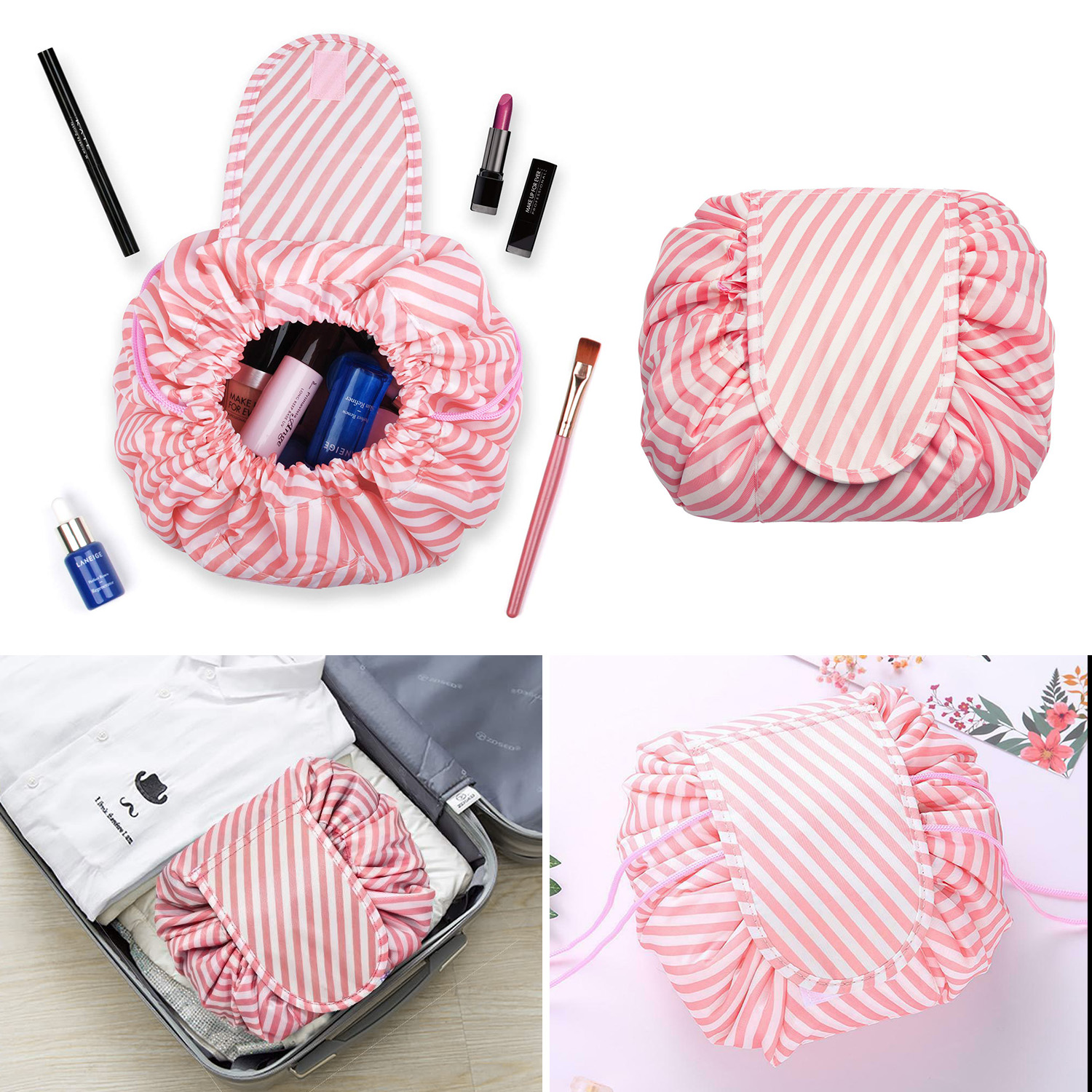 [SG Seller]Nordic Style Foldable Fabric Storage Box Portable Make Up Bag Case Drawstring Cosmetic Bags Magic Storage Travel Pouch Bag
