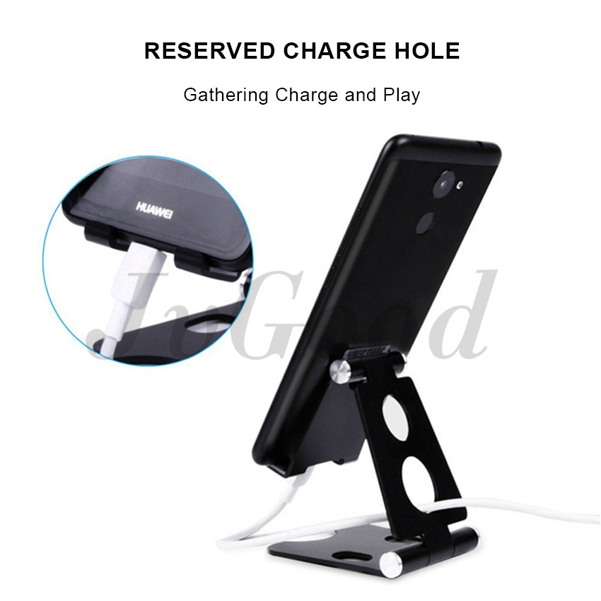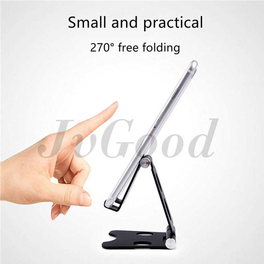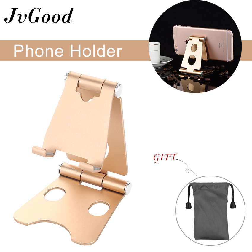 JvGood Adjustable Foldable Phone Holder Aluminum Desktop Support Portable Universal Desk Stand with Non-slip mat for Smart Phone Tablet Display with Non-slip mat
