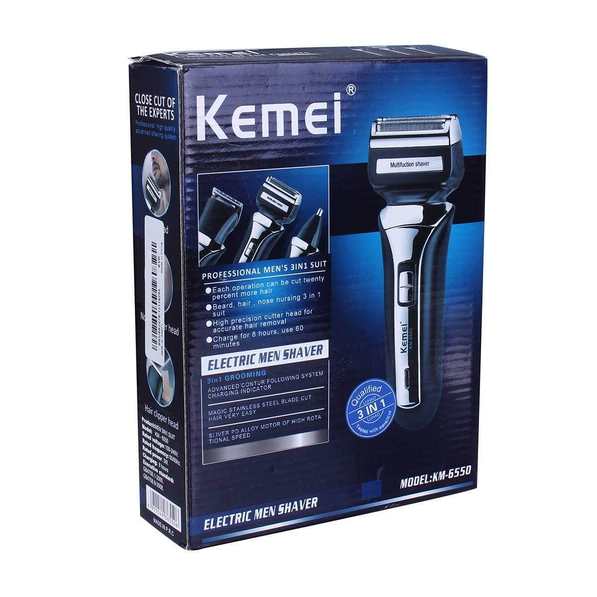 KEMEI KM-6550 Original 3 in 1 Electric Razor Floating Wireless Rechargeable Beard Shaver Nose Hair Trimmer Ear Clipper for Men