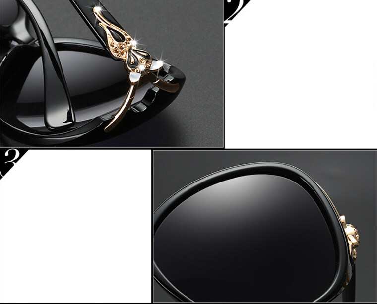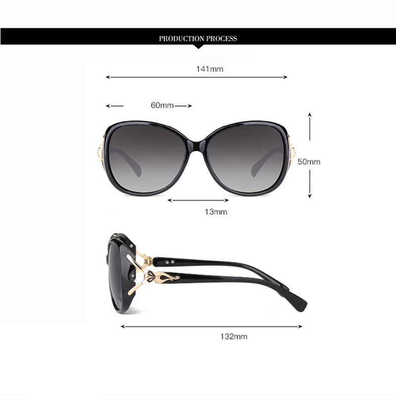 IMPALA QT102W Fashion Women Polarized Sunglasses Korean Style Anti UV400 Oversize Cat Eye Sun Glasses Block Sunshine Anti Glare Black Shades HD Lens Fox Shaped Decoration Black Spectacles 4 Colors ava