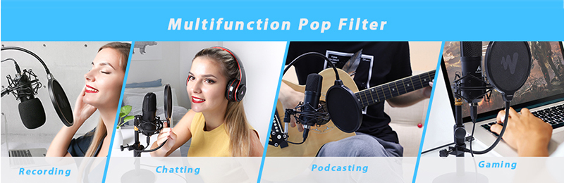 MAONO AU-B00 Microphone Pop Filter Metal Pop Filter Shield Double Layer Windscreen Popfilter For USB Microhone Podcast Microphone