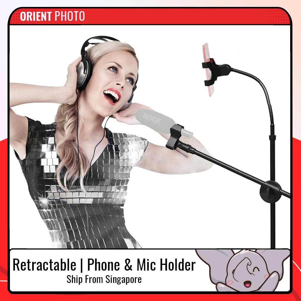 eDSLRs Professional Microphones Swing Boom Floor Stand Mic Stand With Mobile Phone Holder TikTok Live Stream Facebook Live
