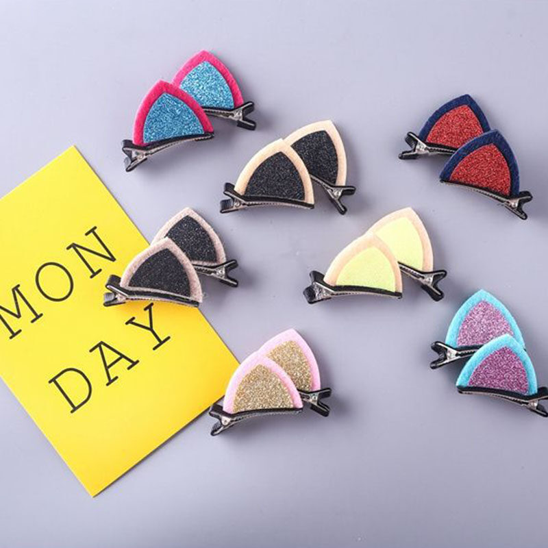 ★FINE TOO★ 1 Pcs Korean DIY Sequin Shining Cat Ears Hair Clip New Product Child Hair Accessories Rabbit Ear