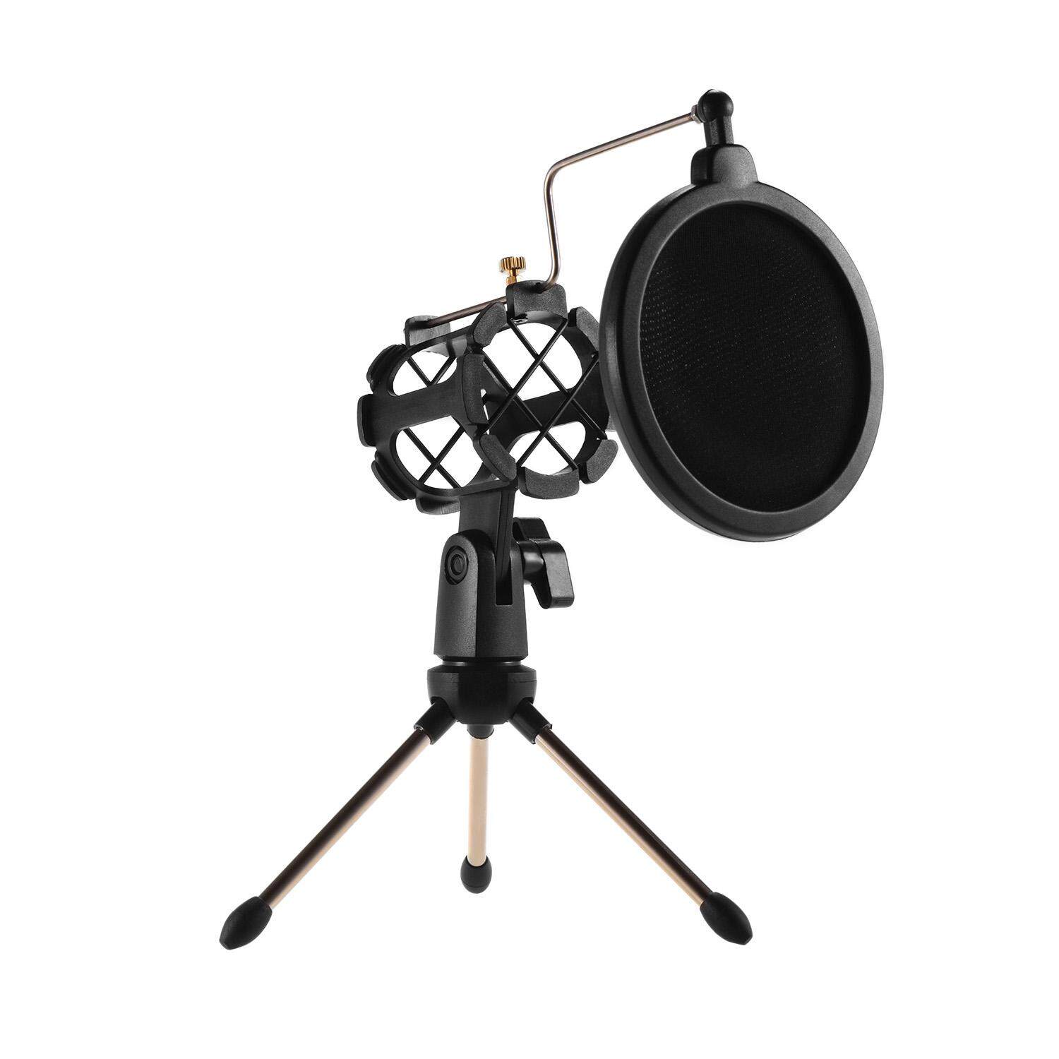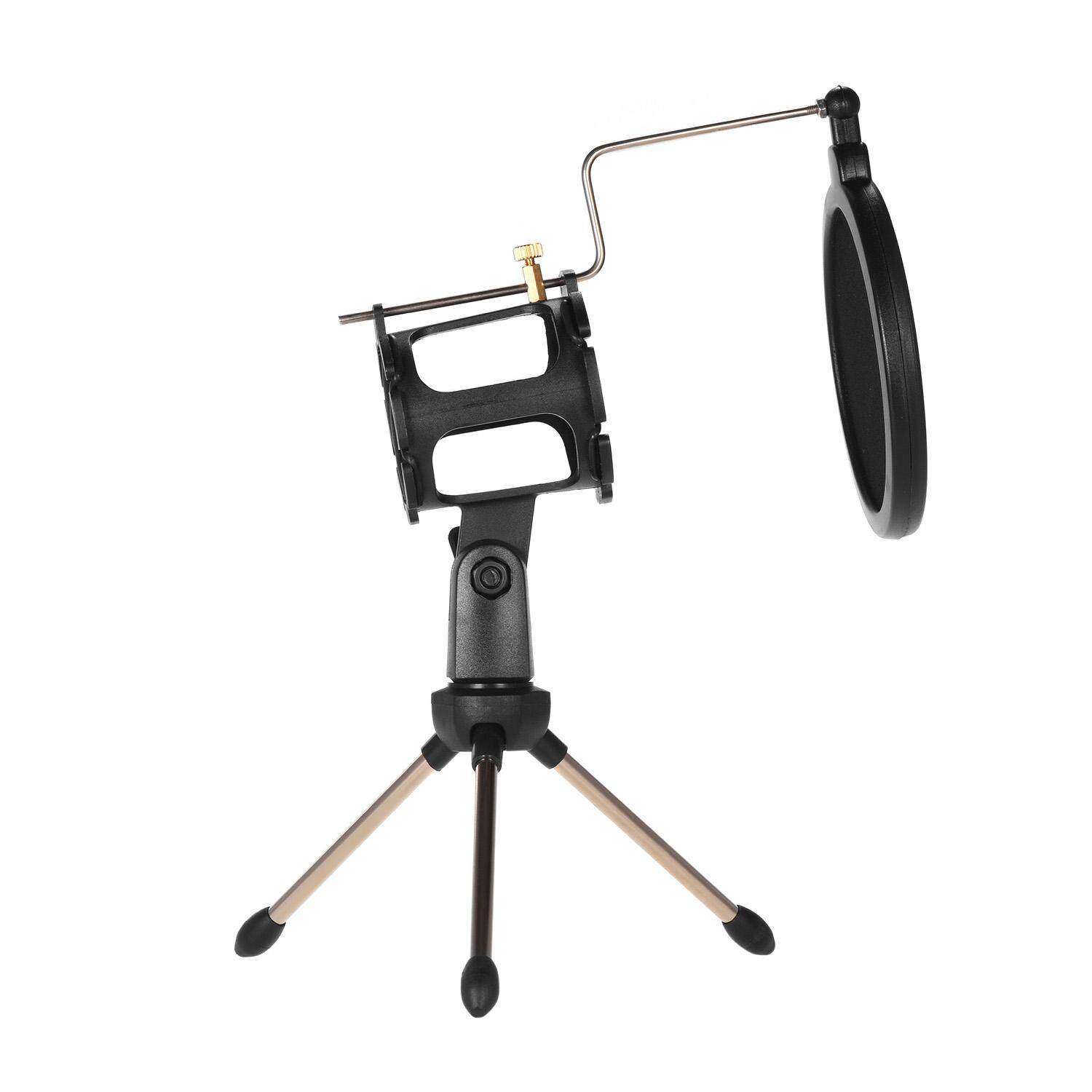 Mini Desktop Microphone Stand + Shock Mount Mic Holder + Pop Filter Kit for Studio Recording Online Broadcasting Chatting Singing Meeting