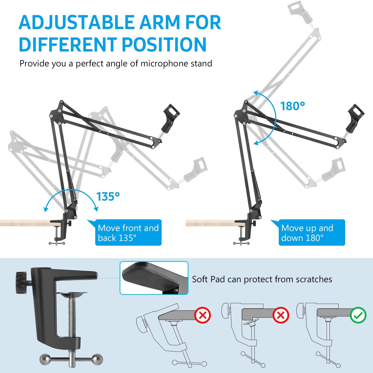 Heavy Duty Microphone Stand (Dual layered Windscreen Pop filter option available ), Suspension Boom Arm Stands for Blue Yeti , Blue Yeti X , Yeti Nano, Blue Snowball and Other Mic