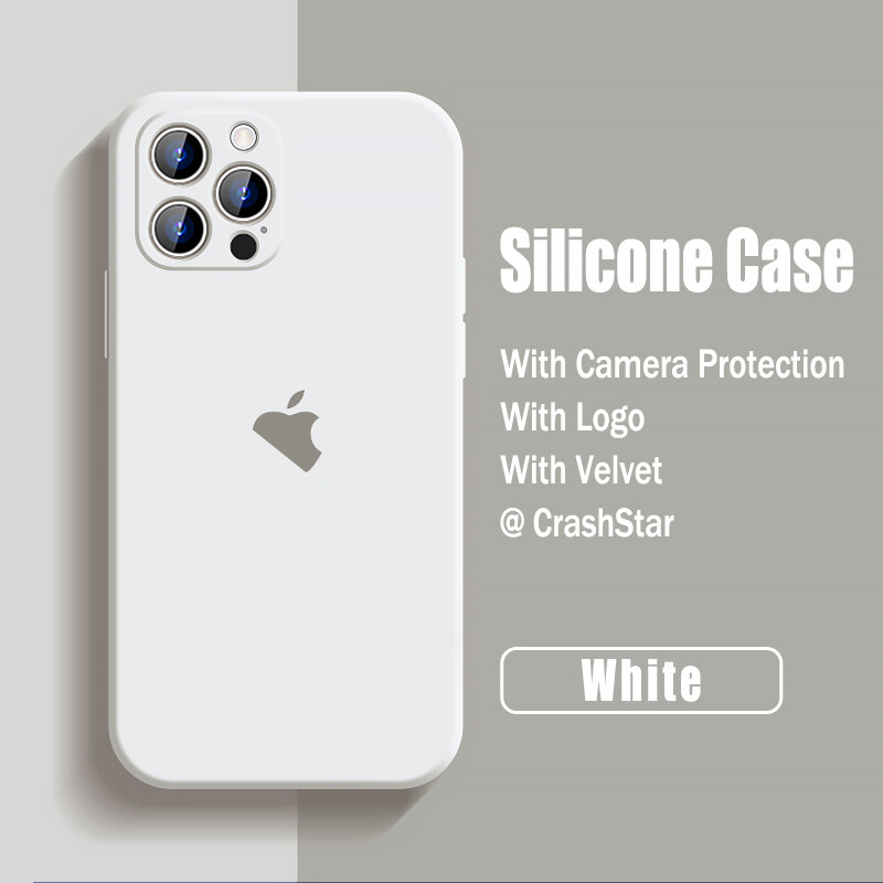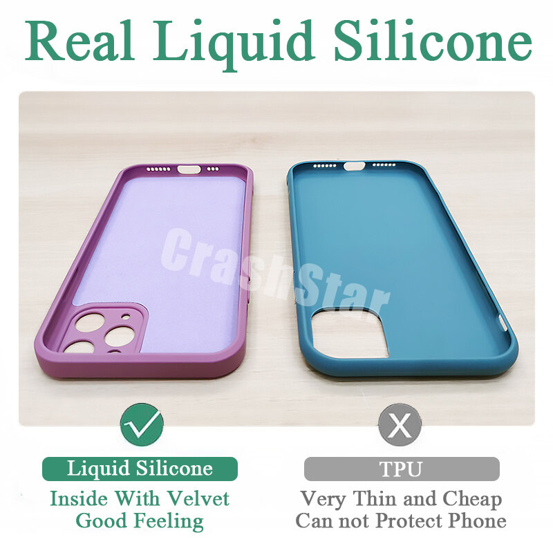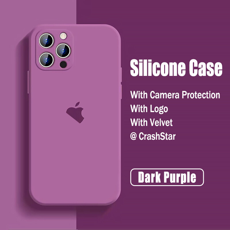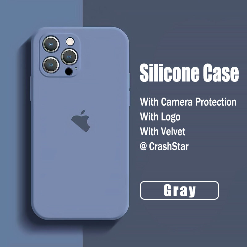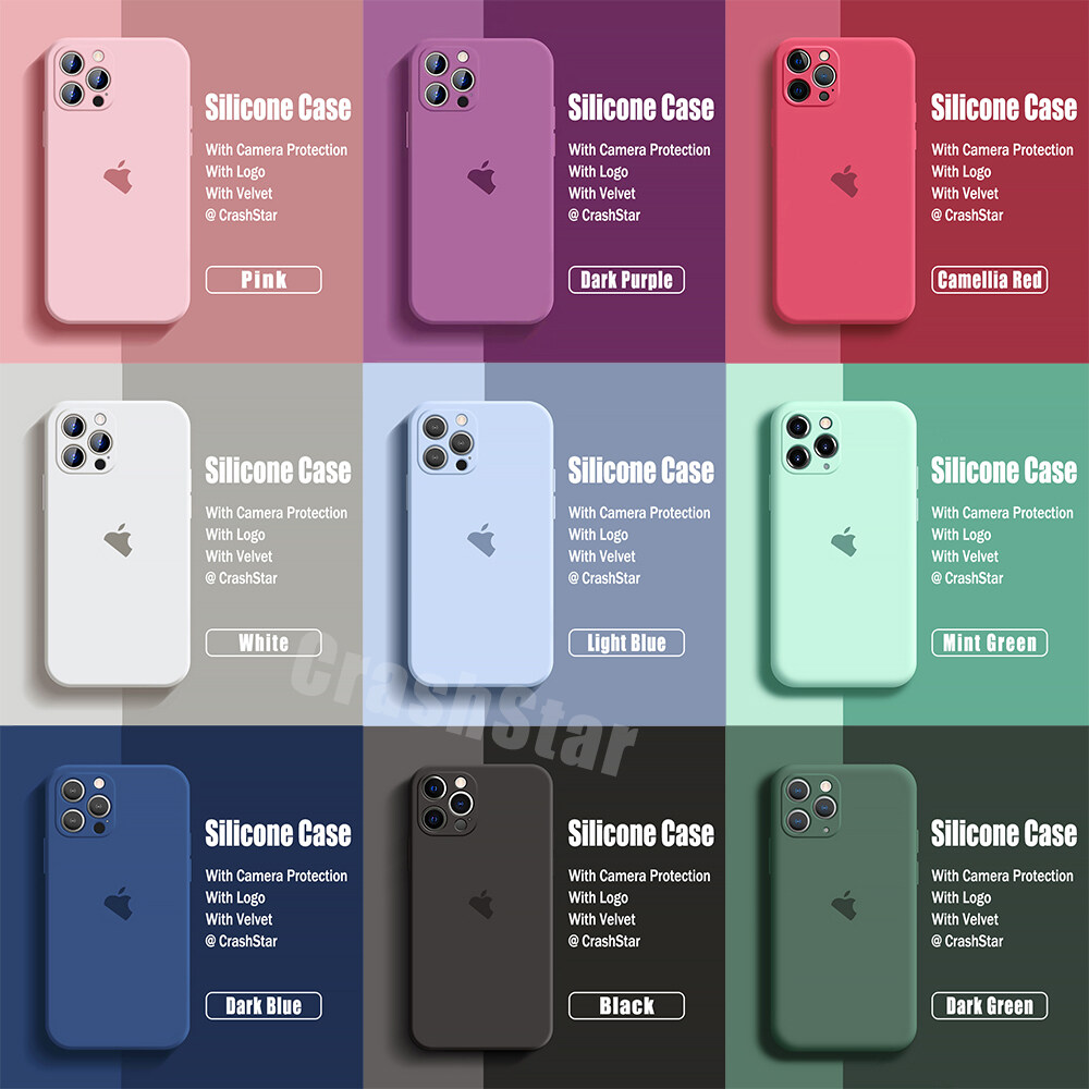 CrashStar With Logo Liquid Silicone Soft Phone Case For iPhone 14 13 12 11 Pro Max Mini X XR XS MAX 8 7 6 6S Plus + SE 2020 Colorful Phone Casing Shockproof Phone Cover With Full Cover Camera Protecti