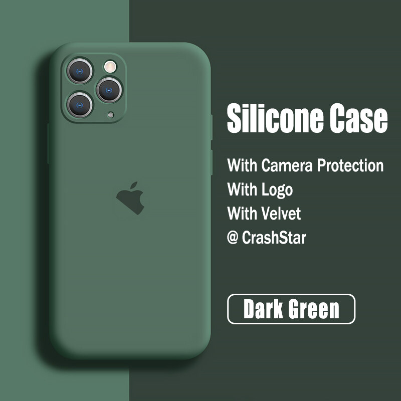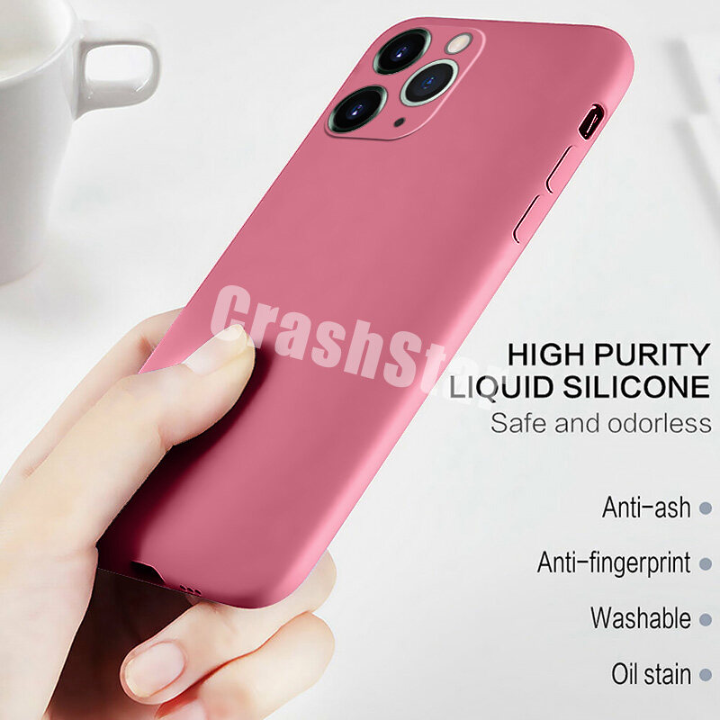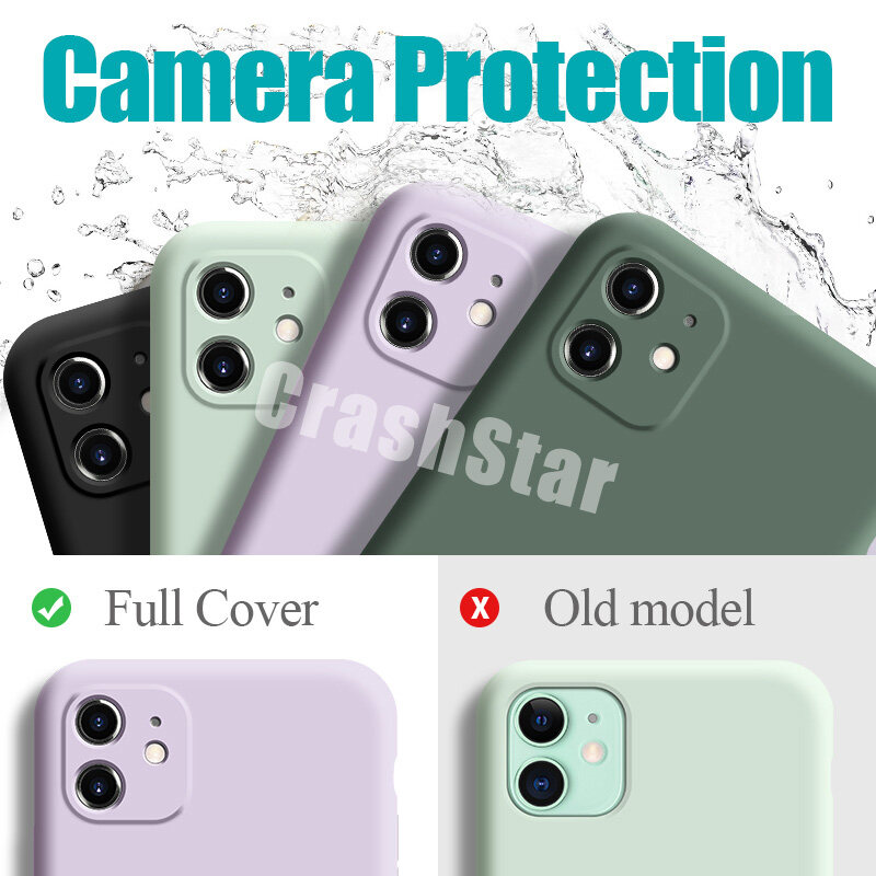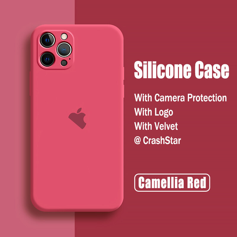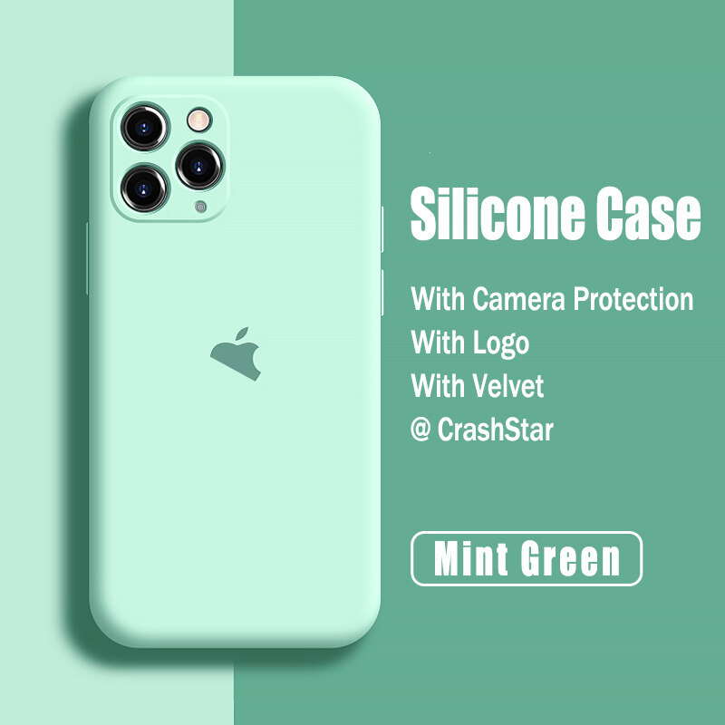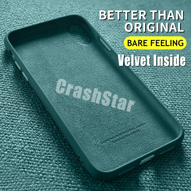 CrashStar With Logo Liquid Silicone Soft Phone Case For iPhone 14 13 12 11 Pro Max Mini X XR XS MAX 8 7 6 6S Plus + SE 2020 Colorful Phone Casing Shockproof Phone Cover With Full Cover Camera Protecti