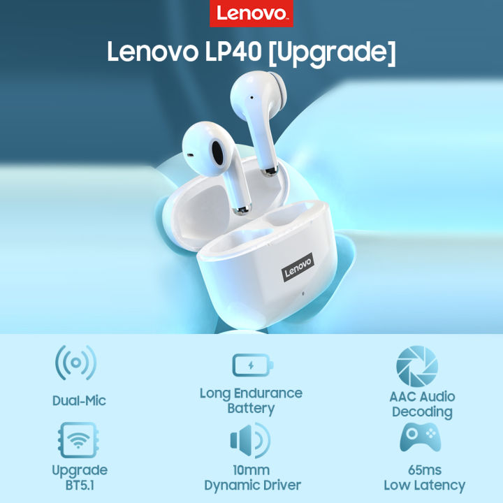 【SG Local】Lenovo Authorised Reseller Lenovo LP40 Pro Wireless Earbuds Bluetooth Earphone Headset Handsfree With Microphone for Mobile Phones Iphone Apple Android