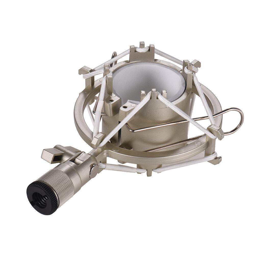 Features: Plastic shock mount for condenser microphone with 43-46mm diameter.(Please verify your mic size before buying) Can isolate most studio condenser microphone from physical vibration, floor and stand noise, making your singing more clear. The clamp interior is covered with soft foam to protect your microphone from damage. The mount adapter with 3/8" & 5/8" threads and features an angle adjustment, suitable for most mic boom and flexible to use. Ideal for on-line broadcasting, studio music recording, network singing, etcSpecifications: Color: Black/ Golden(optional) Material: Plastic Item Weight: 73g / 2.6ozNote: The microphone and microphone stand showed in the picture are not included.