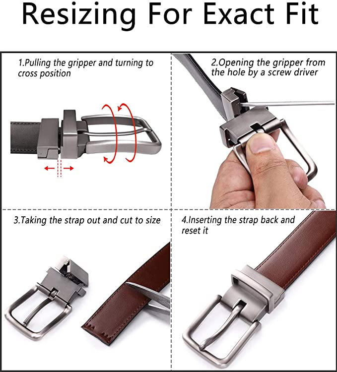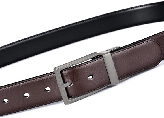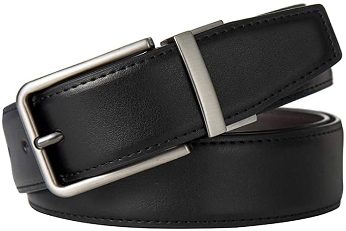COWATHER Reversible Prong Casual Belt for Men with Genuine Leather 1.3" Wide Classic Everyday Sports Belts with Alloy Rotated Buckle. One Belt Rotated Double-sided 2 Colors to wear