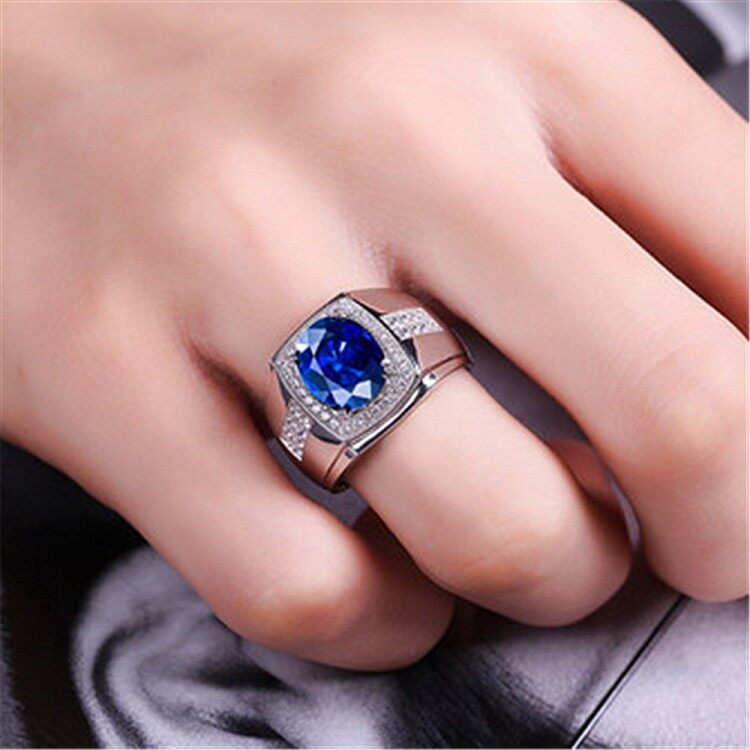 Oval Cut 18K White Gold Plated Sapphire Blue Cz Wedding Party Ring For Mens Gifts Size 6-10