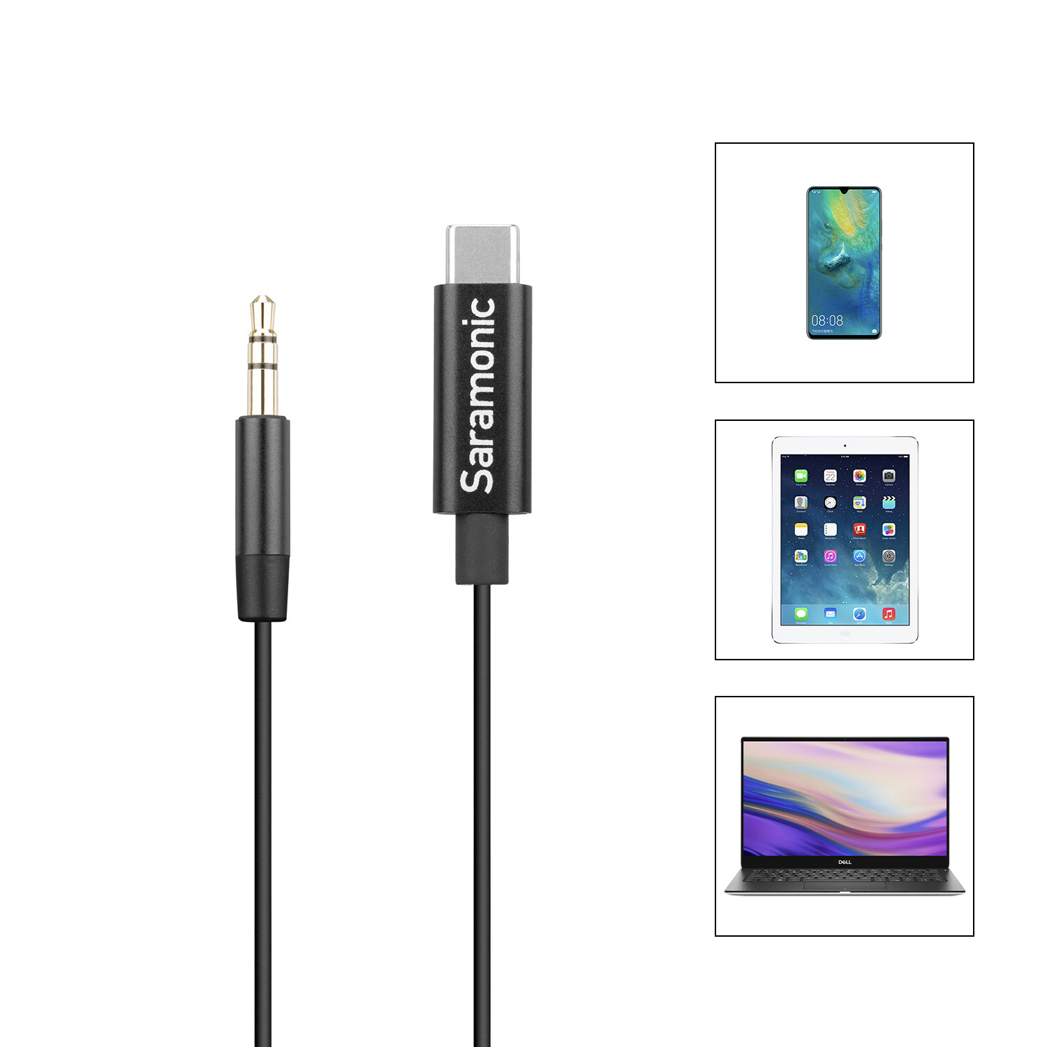 Saramonic SR-C2001 is a male 3.5mm TRS to Type-C male jack adapter cable.