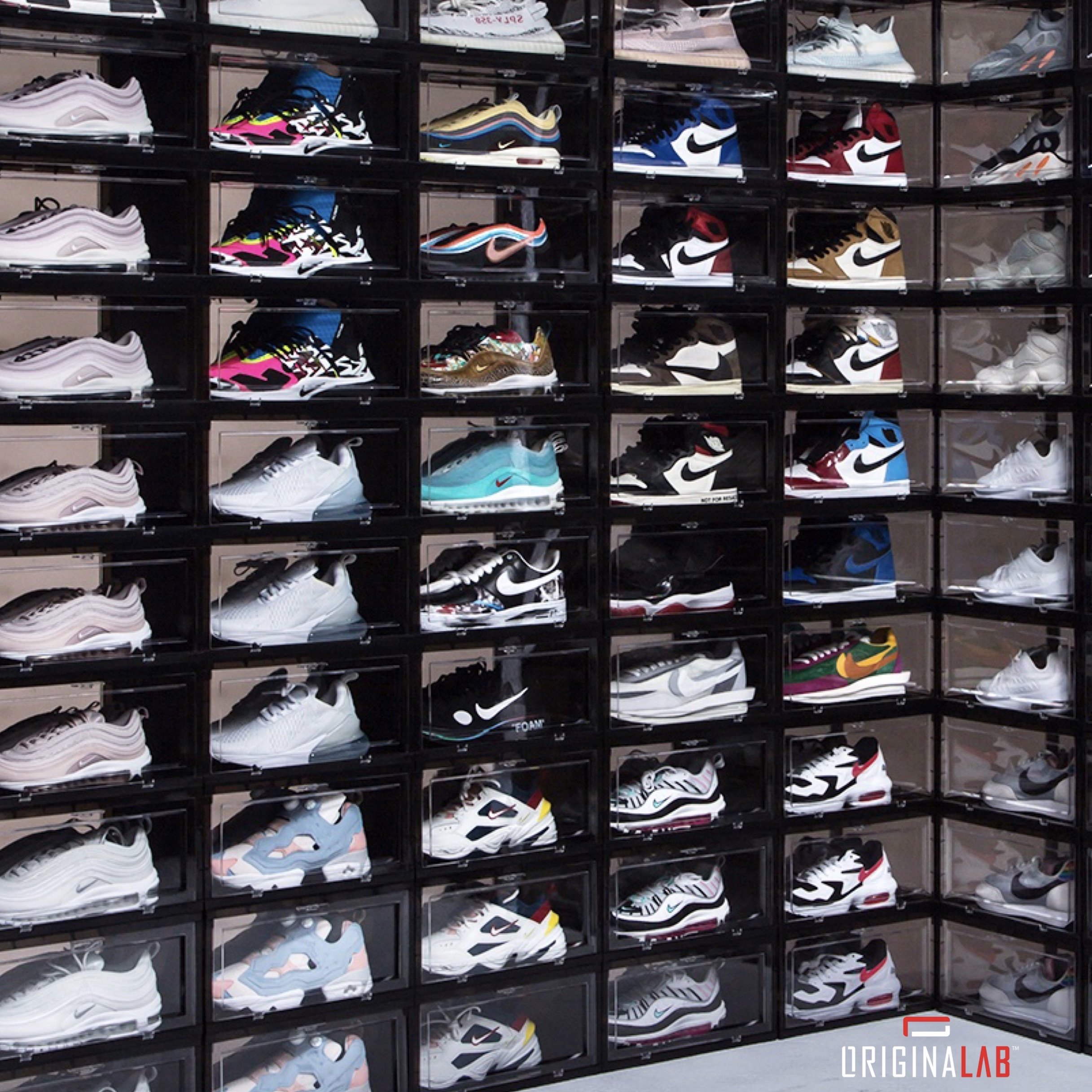 ORIGINALAB Premium Shoe Boxes keep your shoes/sneakers organized and neat. Gives you a good overall view of your shoe collection, making it simple to grab them at a glance.