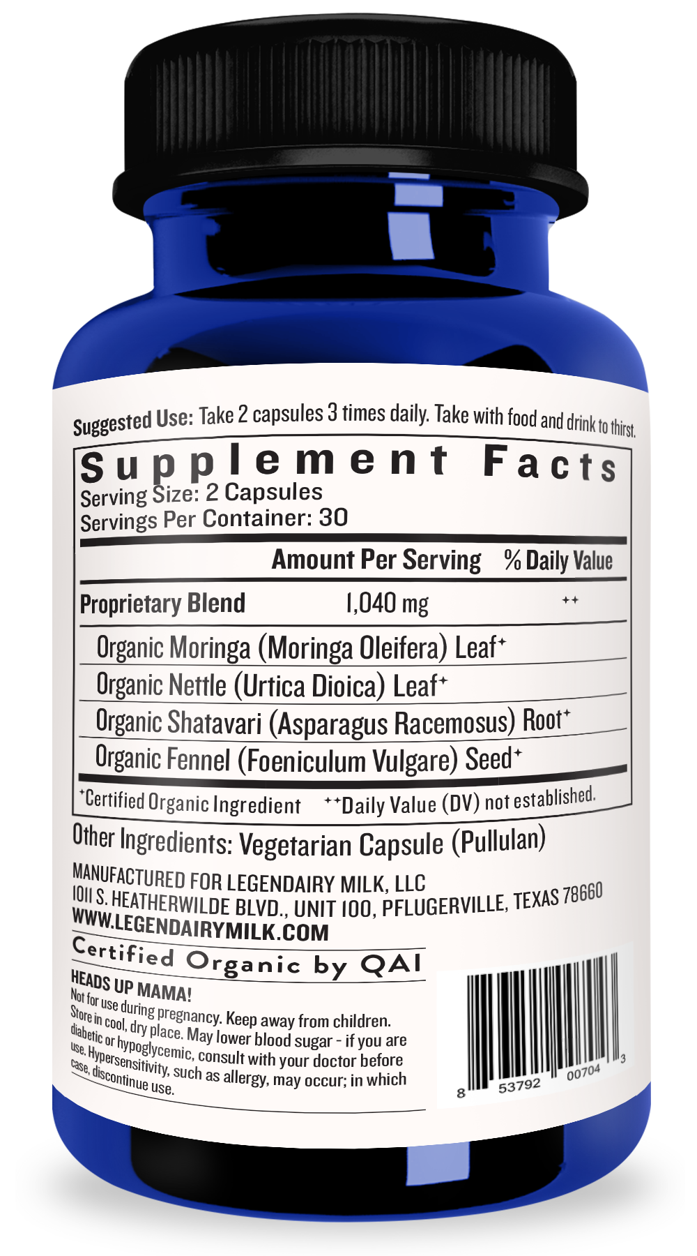 If you are constantly worrying about whether you are producing enough milk, please know that you're not alone. Concern about an inadequate milk supply is the #1 reason why women stop breastfeeding. That's why Legendairy Milk was created. For centuries, certain herbs and foods have been used in different cultures to help promote breast milk production. Our herbal lactation supplements were formulated with these carefully chosen ingredients to target the primary issues that affect milk production. Our products are free of any additives or preservatives so that every capsule is brimming with pure and potent milk-enhancing ingredients. We've gone to great lengths to ensure our formulations are organic and healthy for both mom and baby because we know a Legendairy mom like you deserves a Legendairy product.