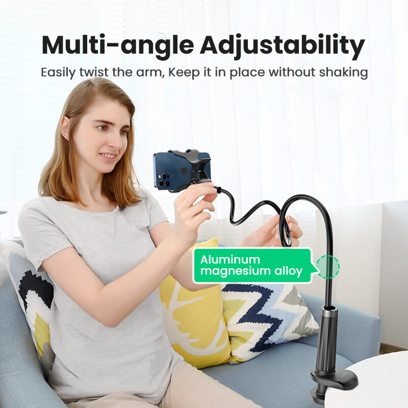 UGREEN Gooseneck Mobile Phone Clip Long Arm Holder Clamp Mount for SAMSUNG S22+/iPhone 13 Pro Max/OPPO Reno 3/Huawei P50 Flexible Bed Desk Table Clip Bracket for Phone 4.0-7.2 Incher