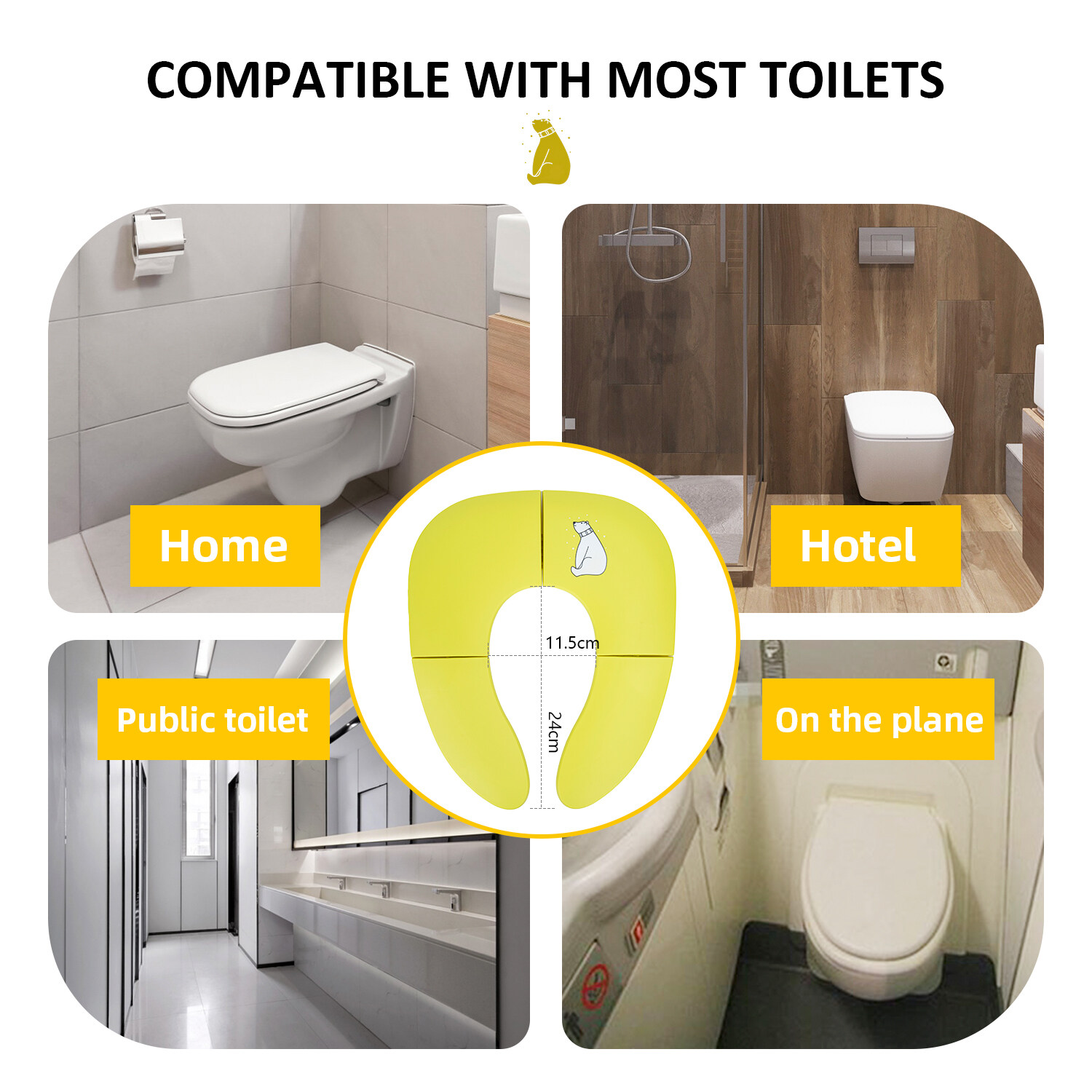 Freely switch Foldable To Unfoldable Design - Toilet Seat cover Folds up pretty small size of 7.2''L x 5.9''W x 2.8''H to bring to public restrooms easily and perfect for your children's away-from-home bathroom's needs and compact for "on the go" and traveling;