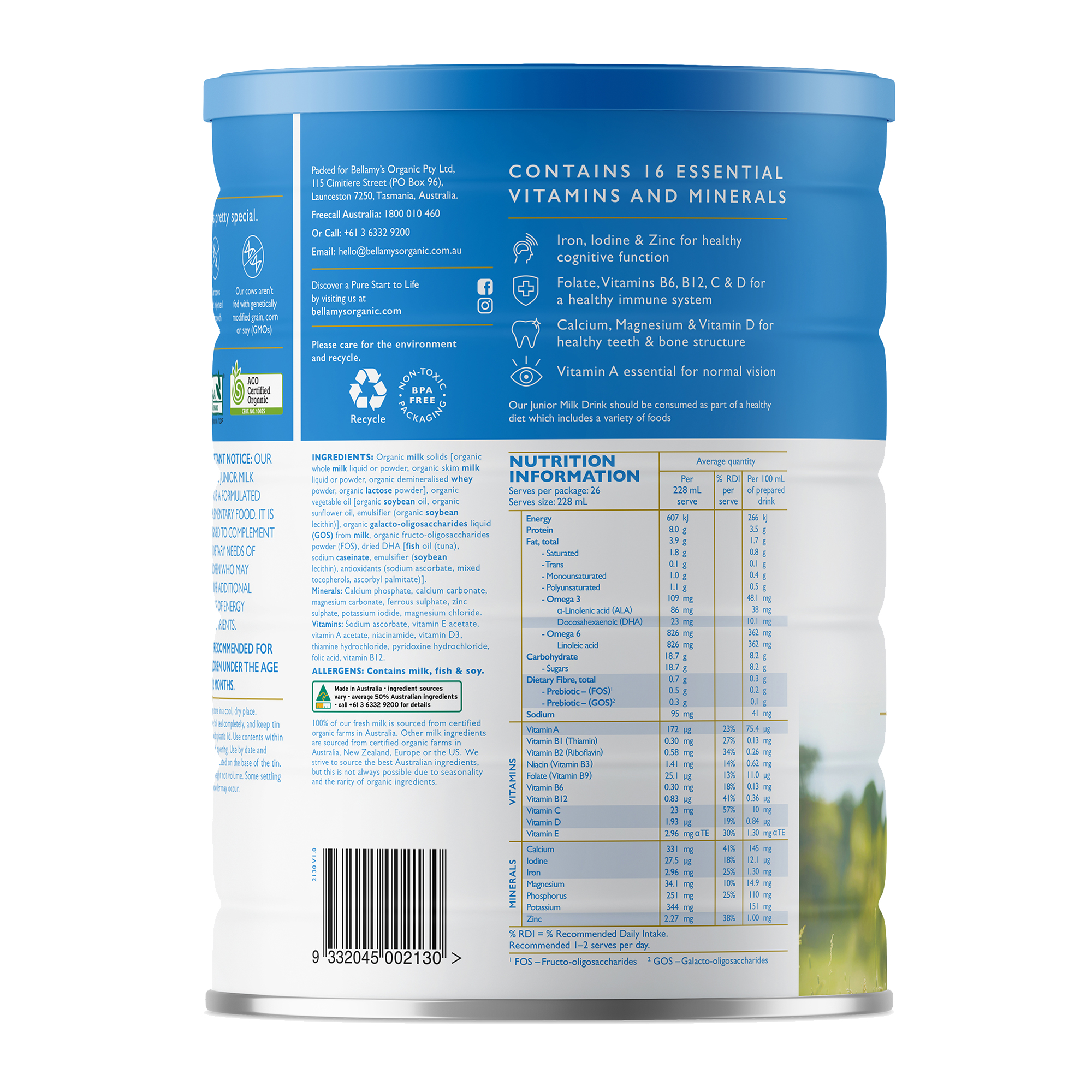 Bellamy's Organic Step 4 Junior Milk Drink (3+ years) 900g x 6