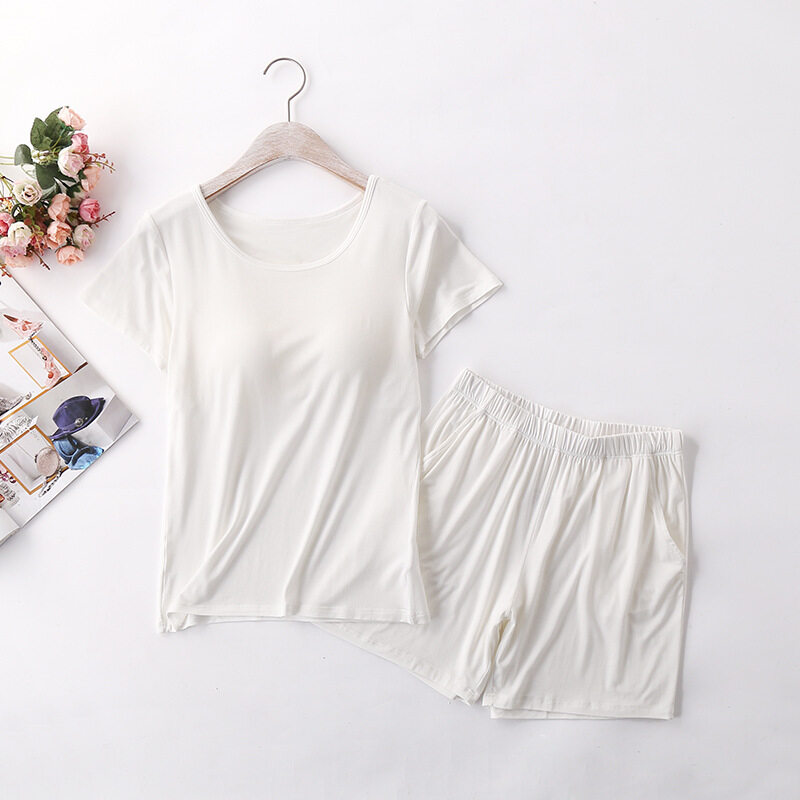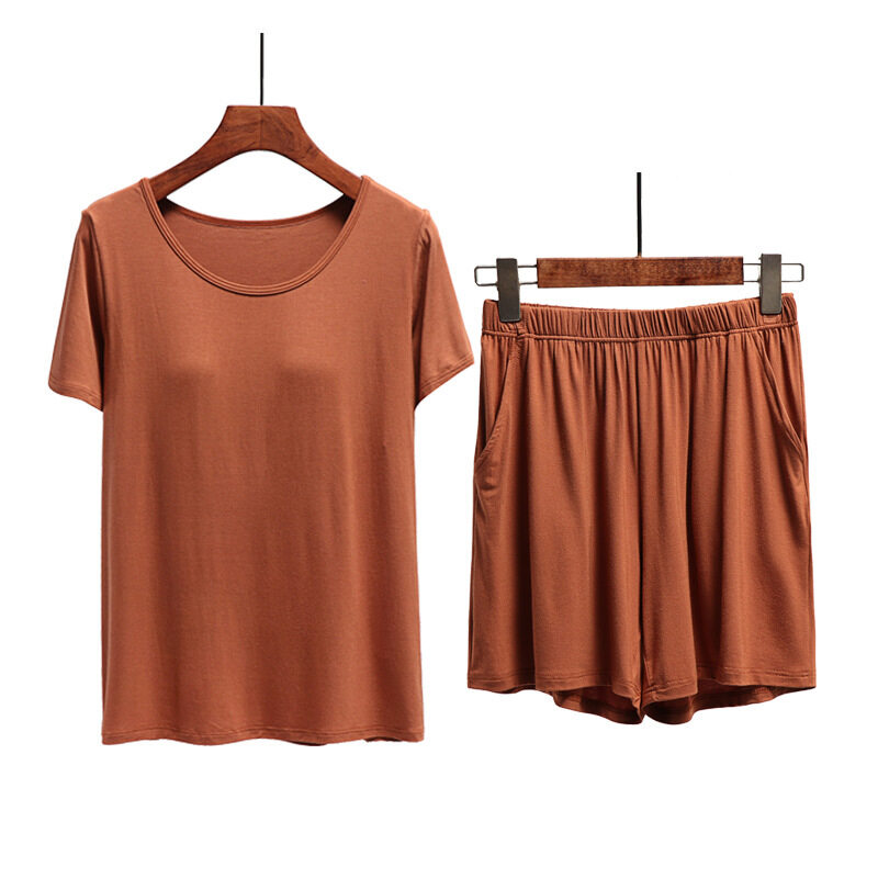 1 Set Summer Modal Short-sleeved Shorts Women's With Chest Pad Tops Thin Home Wear Pajamas Female Two piece set With Pockets Cotton Casual Gym Yoga Elastic Waist Short Plus Size Loose Comfortable brea