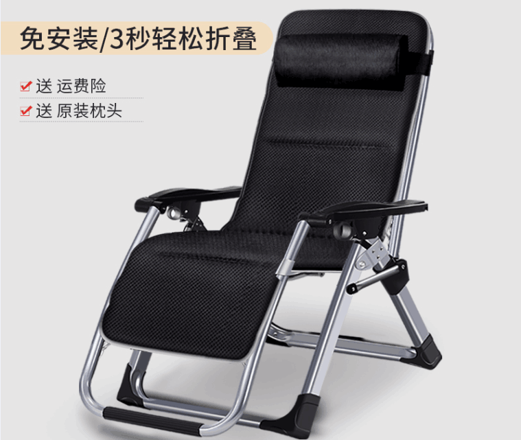 Metal reinforced lock, anti-rollover installation-free, thickened fabric, give you a comfortable lunch break, 0-168 degrees backrest adjustment, seven days no reason to return, quality assurance. Material: Steel specification: Open size 165*67 * 77cm