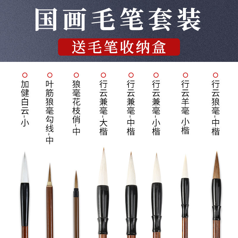 Chinese Painting Writing Brush Set Beginner's Full Set of Fine Brushwork Pen Chinese Landscape Freehand Painting Student Calligraphy Small Big White Clouds Painting Tools Professional Grade High-End W